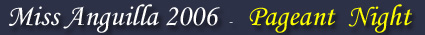 A highlight of Anguilla's Carnival 2006, was the Miss Anguilla Pageant held at the Landsome Bowl Cultural Center on August 10th 2006.  Four beautiful young ladies vyed for the coveted title. They were, Contestant #1 Miss Joanne Phillips #2 Miss Monique Reid-Marlin, #3 Miss Latoya Hughes and #4 Miss Amber Woodley. In front of a capacity crowd, the well poised contestant #4 Miss Amber Woodley was crowned Miss Anguilla 2006 and Miss Latoya Hughes was adjudged 1st runner up. Both young ladies  also equally shared all other awards disseminated on the evening.