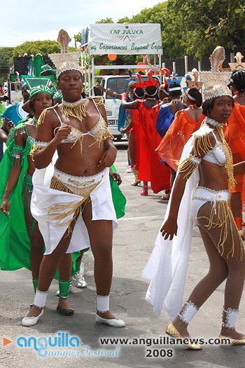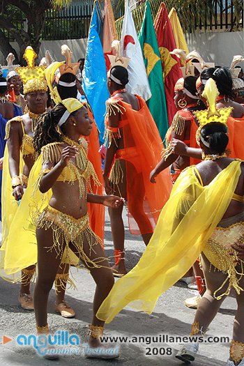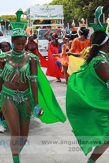In four pages we show some of the 2008 Parade, termed by many as the "Parade Of Bands" due to the small  number of persons who participated. For a week that started out on a high note with enjoyable pageants, boat races and Calypso shows, the Parade of Troupes was the beginning of a less that impressive end.